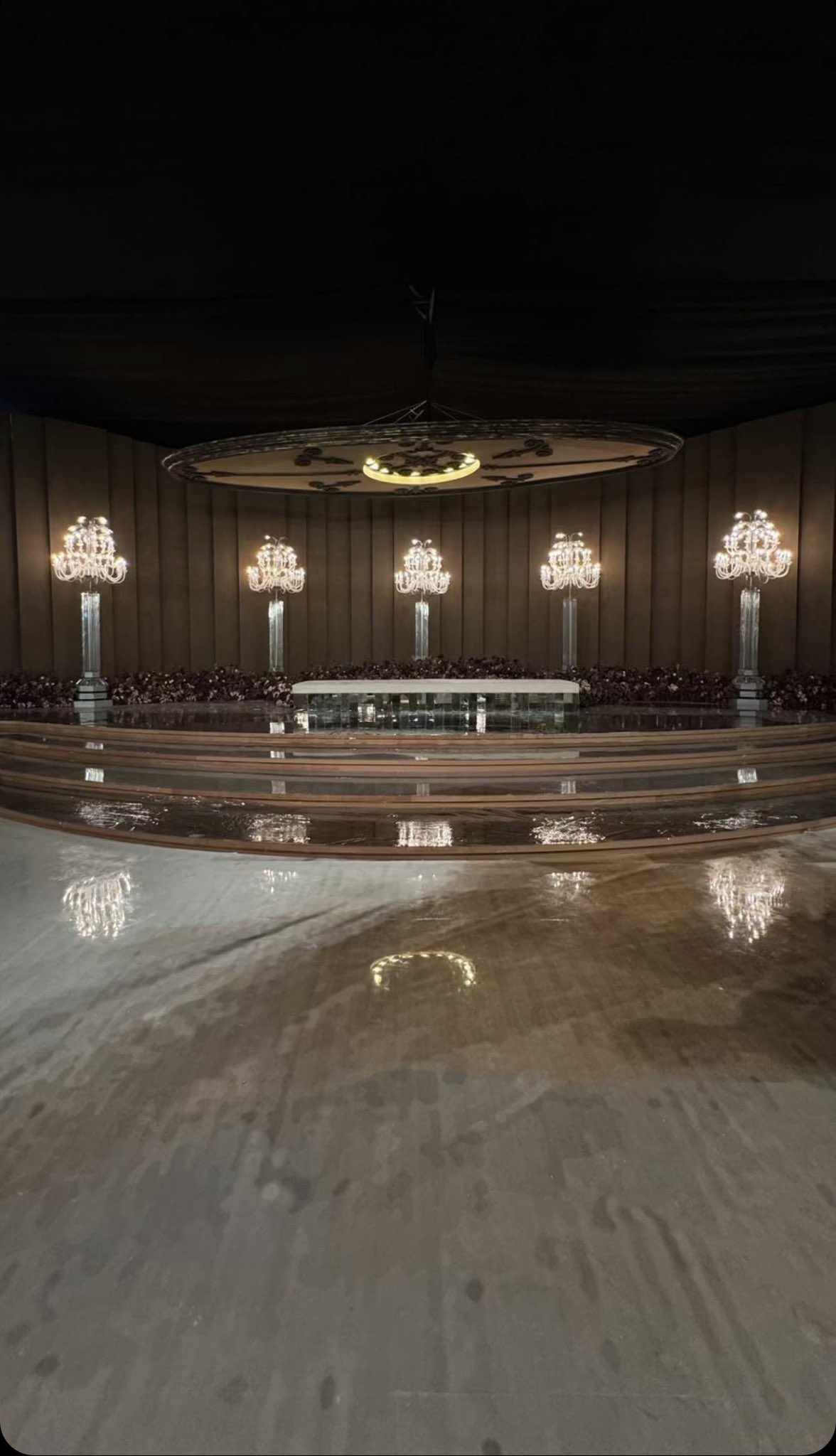 أما الأضواء والديكورات والزخارف التي زينت القاعة فقد أضافت طابعاً ملكياً على الحدث، جعل من الحفل مشهداً مذهلاً أمام الحضور.