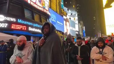 البوابة - أدى المئات من المصلين صلاة التراويح في تايمز سكوير، الذي يُعد من أشهر وأهم الميادين التجارية مانهاتن بنيويورك، في حدثٍ استثنائي يشهده الميدان للعام الثاني على التوالي في شهر رمضان المبارك.
