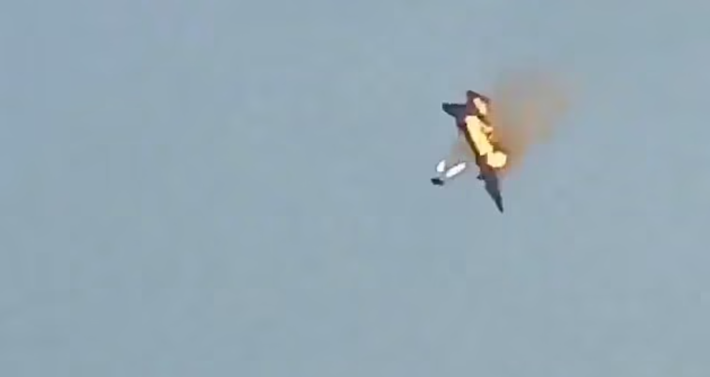 وأظهرت اللقطات المتداولة في المواقع الإخبارية ومنصات التواصل الاجتماعي، الدخان والشرر المنبعث من الطائرة روسية الصنع قبل انسحاب الطيار ومساعده من الطائرة.