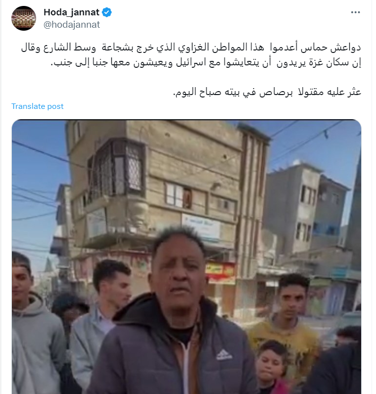وخلال الساعات الماضية، بدأت حسابات مشبوهة الترويج لمقتل الرجل على يد حركة المقاومة الفلسطينية حماس بحجة أنه دعا لـ"التعايش السلمي مع إسرائيل" وبأن حماس كانت السبب وراء شلال الدم الذي أريق في قطاع غزة في أقاب أحداث "طوفان الأقصى" في السابع من أكتوبر الماضي.