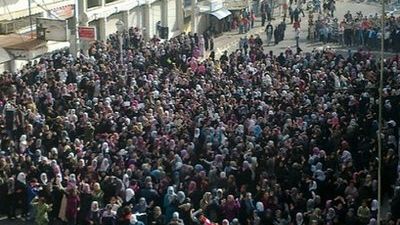 وقالت احدى المدافعات عن حقوق الانسان ان أكثر من ألف امرأة نظمن مسيرة اليوم، في مدينة بانياس السورية في احتجاج نسائي مطالب بالديمقراطية.