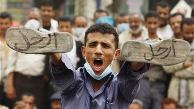 قال محتجون يمنيون يطالبون بتنحي الرئيس على عبد الله صالح انهم سيصرون على المطالبة بتركه السلطة فورا والقوا عليه اللوم في أعمال العنف التي أثارت مخاوف الولايات المتحدة من انتشار الفوضى التي قد تخدم مصالح المتشددين.