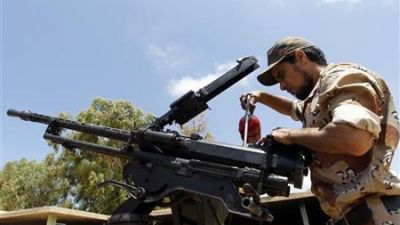 اضطرت المعارضة الليبية المسلحة التي تقدمت الى مسافة 80 كيلومترا من معقل الزعيم الليبي معمر القذافي في العاصمة طرابلس الى التقهقر يوم الجمعة أمام قصف صاروخي من جانب القوات الحكومية.