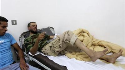 وذكرت مصادر في مستشفى بأجدابيا الى الشمال الشرقي ان نحو 50 مقاتلا اصيبوا يومي الخميس والجمعة وان مدنيا واحدا في البلدة شبه المهجورة قتل عندما اصاب صاروخ اطلقته القوات الموالية للزعيم الليبي معمر القذافي منزلا.