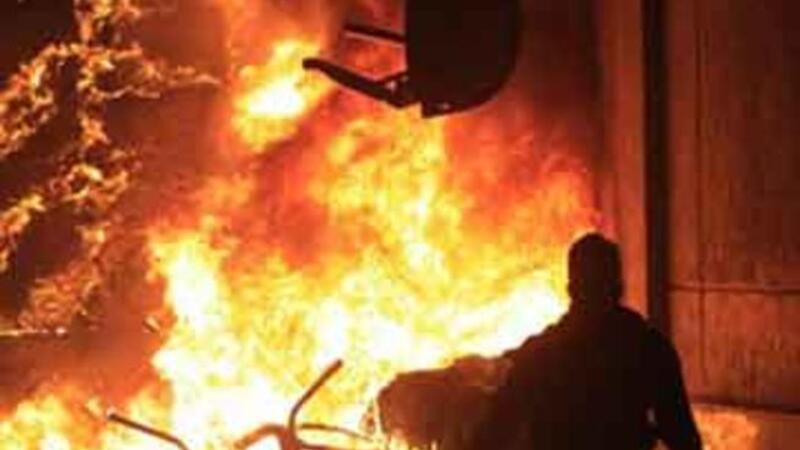 وأطلق الحريق سحبا داكنة من الدخان الي السماء. وشوهد افراد من العاملين بالفندق وهم يرشون السنة النيران بخرطوم مياه قبل ان تصل شاحنة اطفاء
