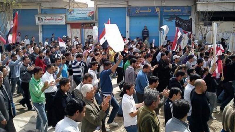 وردد مئات المحتجين "الله.. سوريا.. حرية وبس". كما رددوا هتافات يبدون فيها دعمهم لمدينة درعا التي انطلقت منها شرارة الاحتجاجات قبل شهر والتي شهدت سقوط أكبر عدد من القتلى.
