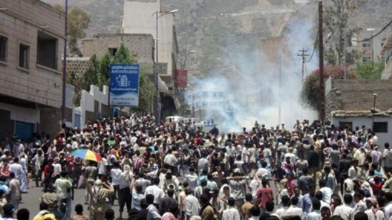 وفي تعز على بعد 250 كلم جنوب العاصمة وأحد معاقل الثورة ضد صالح، اطلقت قوات الامن النار لتفريق المتظاهرين ظهر الخميس ما اسفر عن اصابة العشرات بجروح، بحسب شهود ومصدر طبي.