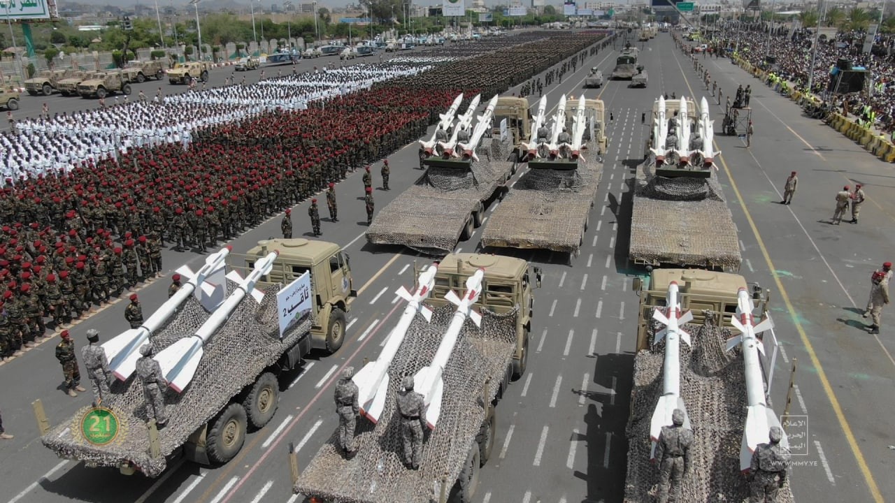 وشهدت العاصمة اليمنية صنعاء، عرضا عسكريا نظمته جماعة الحوثي، احتفاء بالعيد الثامن لثورة 21 سبتمبر، وصفته الجماعة بأنه الأضخم في المنطقة.