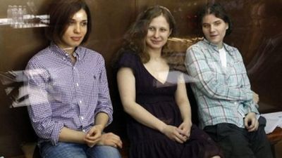 اطلق فريق بوسي رايوت الغنائي الروسي، الذي قضت محكمة في موسكو بسجن عضواته الثلاث عامين، أغنية جديدة تنتقد رئيس البلاد فلاديمير بوتين، وهي متوافرة على الانترنت. وتحمل الأغنية الجديدة اسم «بوتين يشعل نيران الثورة « وتقول الاغنية:»تسير البلاد في الطريق بشجاعة/ البلاد تقول وداعا للنظام».