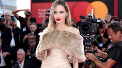 أطلّت النجمة العالمية "أنجلينا جولي" في مهرجان البندقية السينمائي حيث لفتت الانظار بإطلالتها، وتألقت الفنانة البالغة من العمر 49 عامًا بفستان من الشيفون باللون البيج، بدون حمّالات من تصميم "تامارا رالف" Tamara Ralph.