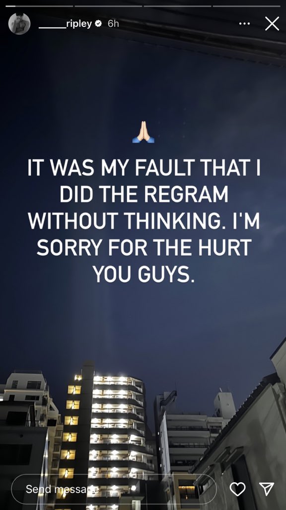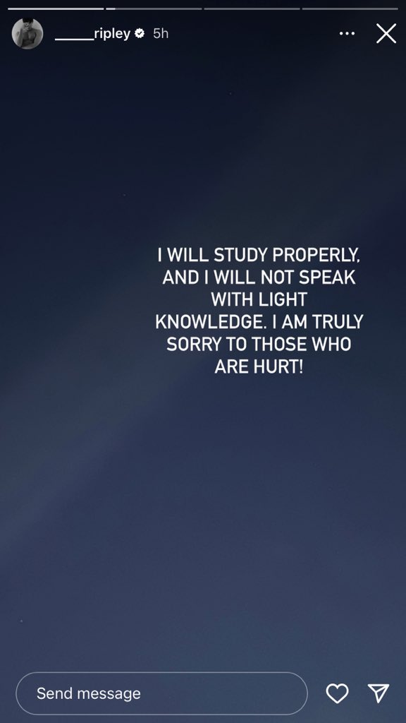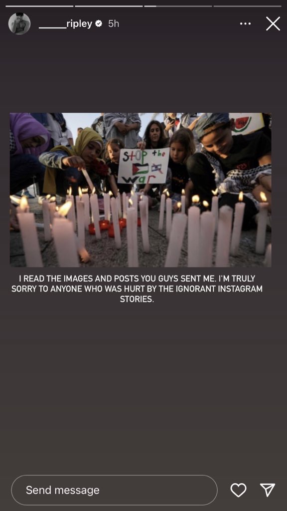 ولم يتوقف الأمر عند حذف المنشور، فقد قرر كون التراجع عن موقفه والاعتذار ودعم سكان غزة، وشارك أكثر من منشور كشف من خلالهم أنه لم يكون يفهم ما يحصل حقًا، وانه قرأ الرسائل وشاهد الصور وفهم حقيقة الأمر، ليقدم اعتذاره لكل من سبب لهم الأذى بمنشوره الداعم لإسرائيل.