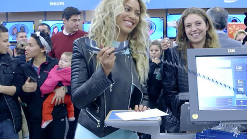 وقالت بينسيه في السماعات الخارجية للمتجر: (معكم بيونسيه! مررت بالمتجر اليوم لأشتري ألبومي. أريد أن أمنح كل فرد منكم هدية، أشتروا ما تريدون من هدايا وسيتم خصم 50 دولار على نفقتي، عيد ميلاد مجيد من بيونسيه).