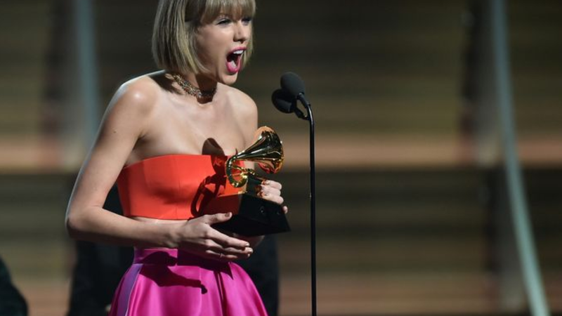 تكرمت النجمة تايلور سويفت في حفل توزيع جوائز الغرامي في لوس أنجلوس .