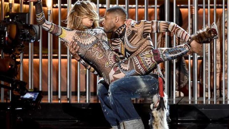 كانت جنيفر لوبيز ترقص بحماس شديد وسط عدد من الراقصات إلا أن ملابس إحداهن تمزقت من الخلف لتظهر مؤخرتها، وتداول عدد كبير من مرتادى مواقع التواصل الاجتماعى الصورة ساخرين من ذلك الموقف الذى أفسد أهم استعراضات الحفل.