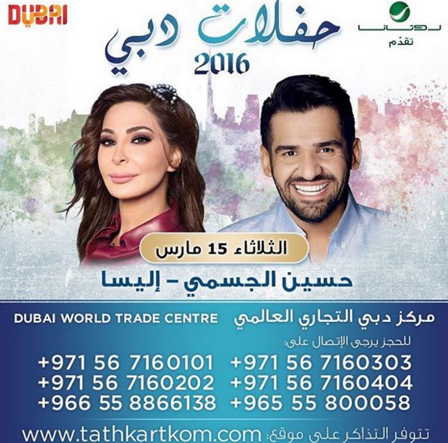 بعد الإعلان عن حفل غنائي يجمع الفنان حسين الجسمي والفنانة اليسا ضمن الحفلات التي تنظمها مؤسسة دبي للمهرجانات بالتعاون مع شركة روتانا لعدد من النجوم العرب ضمن فعاليات “حفلات دبي” بدا رواد مواقع التواصل الاجتماعي بالتساؤل بطريقة ساخرة هل يكون حسين الجسمي سبباً في اعتزال اليسا؟ وذلك بعد انتشار شائعات عن حسين الجسمي بأنه نذير شؤم وخصوصا بعد حادثة اعتزال شيرين عبد الوهاب وكان اخر حفل لها قد جمعها بالجسمي في الكويت.