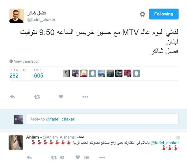 ردّت الفنانة أحلام على تغريدة الفنان المعتزل فضل شاكر، الذي أعلن أنه سيطلّ عبر محطة “MTV”، وقالت: “يا سلام في إنتظارك يعني رح نستمتع بصوتك العذب قريبا”.