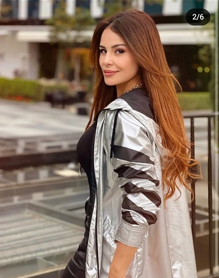 وظهرت الفنانة مرتدية جاكيت فضي لامع، وبنطلون جلد أسود وحذاء طويل الرقبة، واعتمدت على المكياج الناعم و الشعر المنسدل على كتفيها.