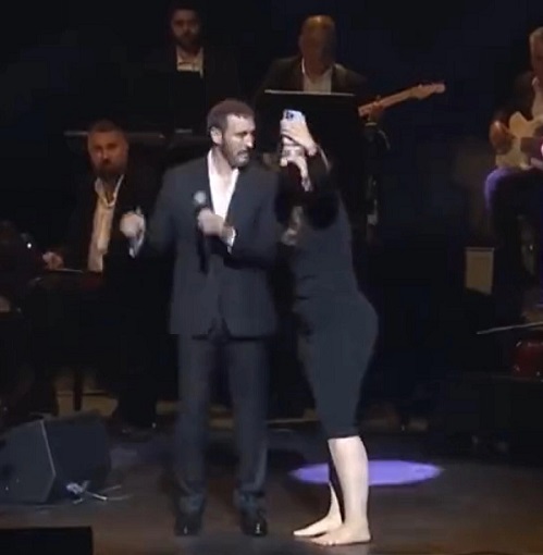فاجأت احدى معجبات الفنان العراقي كاظم الساهر بصعودها على المسرح اثناء غنائه لإلتقاط صورة تذكارية معه، إلا أن المعجبة لم تكتفِ بصورة واحدة وأصرت على البقاء على المسرح، وهي تحمل هاتفها المحمول لأخذ أكثر من صورة و الأمر الذي أثار استياء النجم العراقي وغضبه.