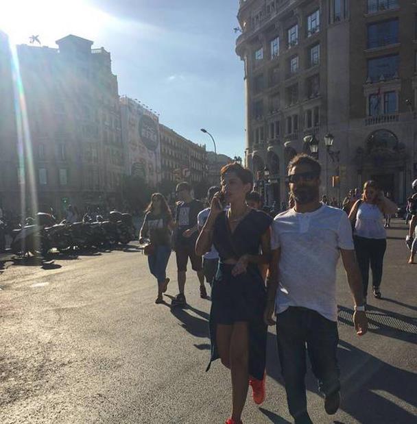 وتظهر في الصورة ياسمين بصحبة زوجها وهما يسيران في إحدى الشوارع الأوربية، لتطل على محبيها بإطلالة وجدها البعض جريئة لترتدي شورت قصير يعلوه تنورة وبلوزة تكشف عن جزء من بطنها.