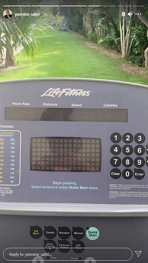 و ظهرت ياسمين صبري في الصورة وهي تستعرض رشاقتها خلال أدائها تمارين رياضية في حديقة منزلها، وحازت الصورة على إعجاب جمهورها