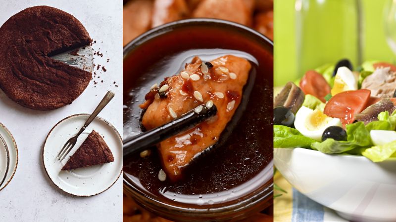 أطباق رمضانية: سلطة نيسواز، دجاج ترياكي ، وكعكة شوكولاتة دون طحين