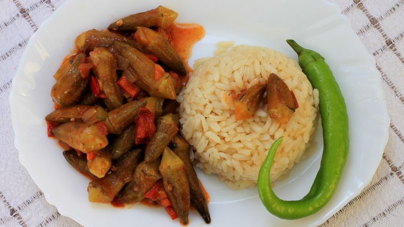 طريقة عمل البامية مع الأرز الأبيض