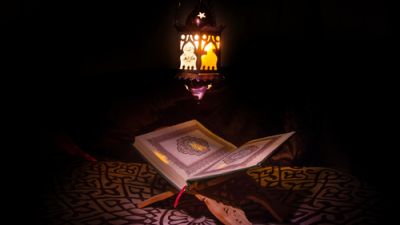 عن ابن عَبَّاسٍ، عَنِ النَّبِيِّ صلى الله عليه و آله:" اللَّهُمَّ افْتَحْ لِي أَبْوَابَ الْجِنَانِ، وَ أَغْلِقْ عَنِّي أَبْوَابَ النِّيرَانِ، وَ وَفِّقْنِي فِيهِ لِتِلَاوَةِ الْقُرْآنِ، يَا مُنْزِلَ السَّكِينَةِ فِي قُلُوبِ الْمُؤْمِنِينَ ".
