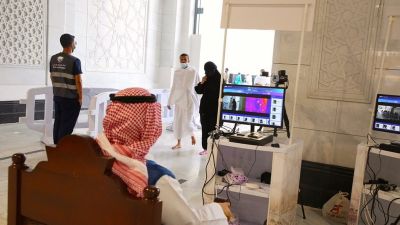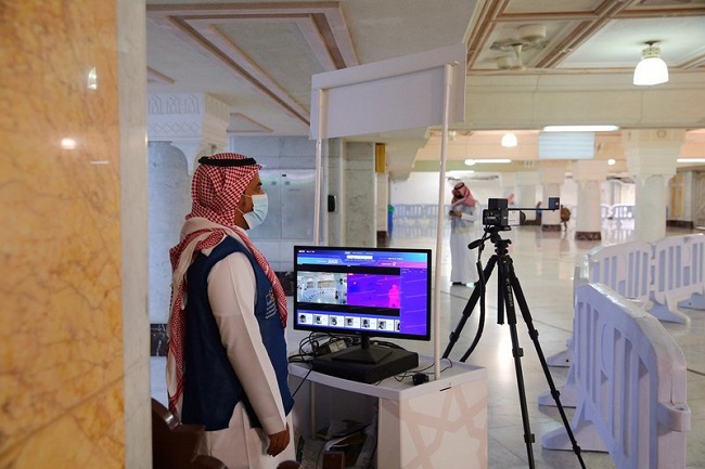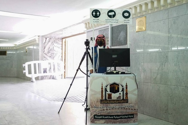 وقامت الوكالة بتجنيد أكثر من (500) موظف مختص لمتابعة الكاميرات الحرارية، حيث تم تركيب (70) كاميرا حرارية على مداخل أبواب المسجد الحرام لقياس ورصد درجات حرارة قاصدي البيت العتيق والعاملين فيه، كما تمت زيادة المسارات عند الأبواب لتحقيق التباعد في مسارات الفحص.