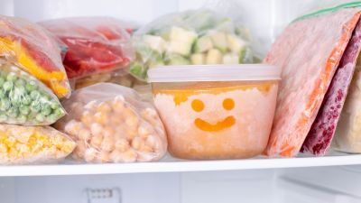 - استخدم حاويات آمنة للتجميد: اختر حاويات محكمة الإغلاق أو أكياس الفريزر لمنع حرق الفريزر، وهو تجفيف وتصلب الطعام الناتج عن التعرض للهواء.