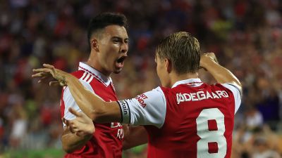 تناوب على تسجيل أهداف فريق المدير الفني الإسباني ميكيل آرتيتا كلٌ من غابريل جيزوس ومارتن أوديغارد وبوكايو ساكا وألبرت سامبي لوكونغا في الدقائق 15 و 36 و 66 و 90 على التوالي.
