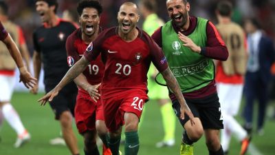 فيما سجل رونالدو وسانشيس وجواو موتينيو وناني وريكاردو كواريزما ركلات البرتغال ليضربوا موعداً في المربع الذهبي مع الفائز من لقاء ربع النهائي الآخر الذي سيجمع منتخبي ويلز وبلجيكا ليلة الجمعة.
