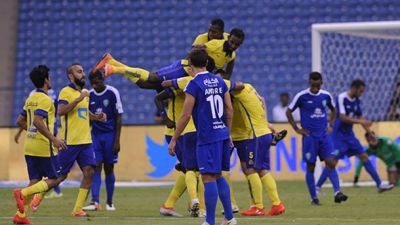 لاعبو النصر يحتفلون بأحد الأهداف