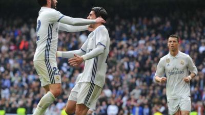إيسكو (يسار) يهنىء موراتا (وسط) بهدفه