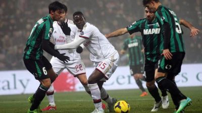 تغلب ساسولو على ضيفه ميلان بأربعة أهدافٍ لثلاثة في المباراة التي جمعت بينهما على ملعب كومونال ريتشي لحساب المرحلة الـ 19 من الدوري الإيطالي.