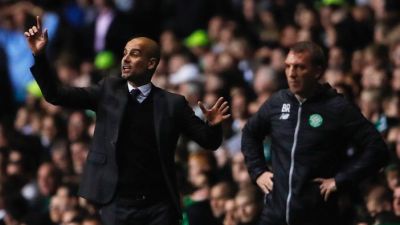 مدرب سيلتك بريندان رودجرز (يمين) وبيب غوارديولا المدير الفني لمانشستر سيتي
