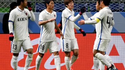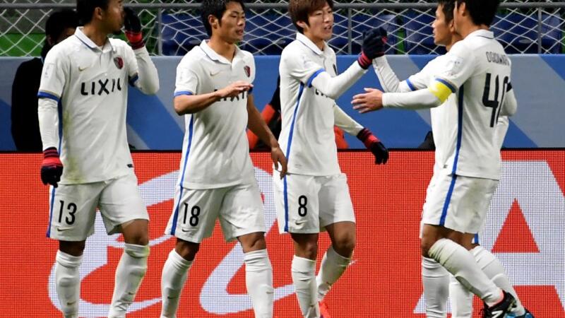 لاعبو كاشيما يحتفلون بالهدف الأول