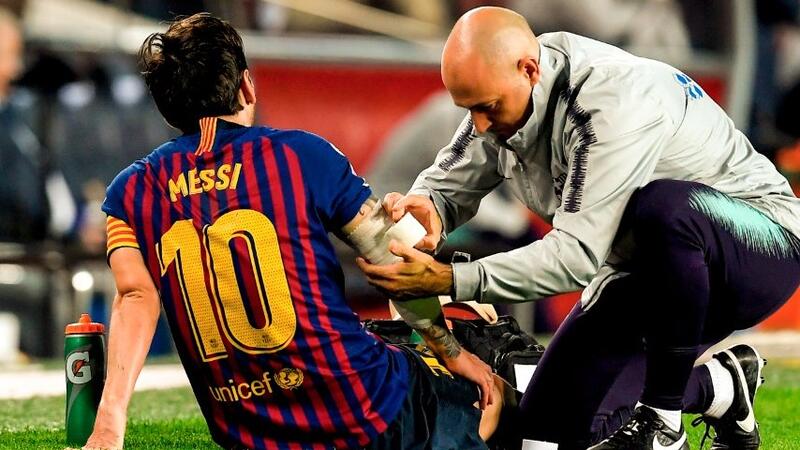 وتمت مساعدة ميسي على الخروج من أرضية ملعب كامب ناو ليتم ربط ذراعه، قبل أن يتم استبداله احترازياً في الدقيقة 26.
