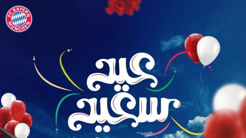 أما الحساب الرسمي لبايرن ميونيخ بطل الدوري الألماني باللغة العربية على "تويتر" ، نشر صورة لملعب آليانز أرينا أرفقها بعبارة "العيد فرحة .. كل عام وأنتم بخير بمناسبة حلول عيد الفطر المبارك".