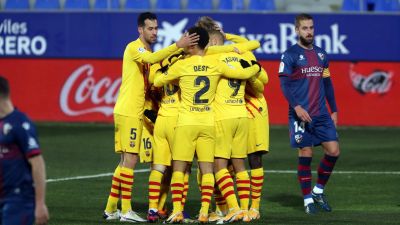 ويحتل البارسا المركز الثالث برصيد 56 نقطة، بفارق نقطة عن ريال مدريد صاحب المركز الثاني، فيما يتواجد هويسكا في المركز الأخير برصيد 20 نقطة.