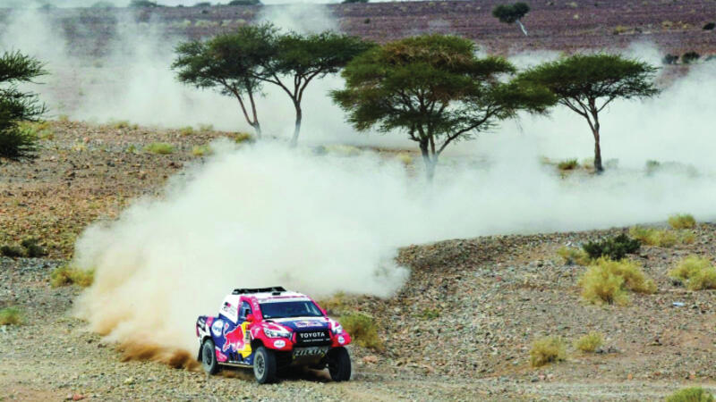 تمسك القطري ناصر بن صالح العطية وملاحه الفرنسي ماثيو بوميل على متن سيارته تويوتا هايلوكس بصحبة فريق جازوا ريسينج جنوب إفريقيا بالمركز الثاني في الترتب العام بعد نهاية المرحلة السابعة من رالي دكار الدولي في نسخته (42).
