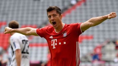 ورفع ليفاندوفسكي رصيده التهديفي في الدوري الألماني لهذا الموسم إلى 33 هدفاً، لينجح في تحطيم الرقم القياسي السابق لأكثر لاعب أجنبي إحرازاً للأهداف في المسابقة، والذي كان مسجلاً باسم المهاجم بيير إميريك أوباميانغ.