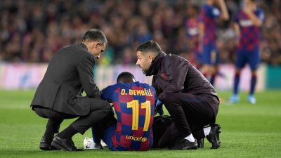 وقال البارسا عبر حسابه الرسمي على "تويتر": "يعاني ديمبيلي من إصابة في فخذه الأيمن، وفي انتظار الفحوصات الطبية الدقيقة للوقوف على مدى الإصابة".