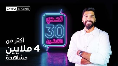 تواصل قناة beIN SPORTS، القناة الرياضة الرائدة التابعة لمجموعة beIN الإعلامية، سعيها الى توسيع حضورها عبر الوسائل الرقمية ضمن نطاق الشرق الأوسط وشمال أفريقيا، حيث أطلقت القناة برنامجها الرقمي الخاص والحصري الجديد باللغة العربية: تحدّي الثلاثين. وقد حصد النموذج الجديد والمبتكر الخاص بالبرنامج – الذي انطلق تزامناً مع بداية موسم كرة القدم 2022/23 – ما يزيد عن 4 ملايين مشاهدة على YouTube حتى الآن، شملت ما يزيد عن مليوني مشاهدة للحلقة الأولى ومليون مشاهدة للحلقة الثانية بعد أسبوع فقط من اصدارهما.