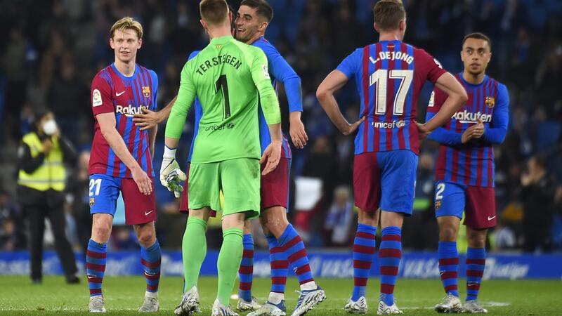 خط الوسط: فرينكي دي يونغ، سيرجيو بوسكيتس، غافي.
