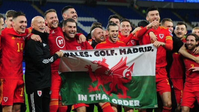 وقاد الجناح بلاده للتأهل إلى يورو 2020 بعد الفوز على نظيره المجري بهدفين نظيفين، واحتفل بايل برفع علم بلاده وعليه كلمات: "ويلز، الغولف، مدريد".