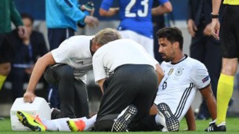 لم يشارك الدولي الألماني ومتوسط ميدان يوفنتوس سامي خضيرة في فوز منتخبه على إيطاليا (1-1 (6-5) ركلات الترجيح) أمس سوى في الربع ساعة الأولى، فالإصابة جعلته يغادر أرضية الميدان تاركاً مكانه لزميله المخضرم باستيان شفاينشتايغر.