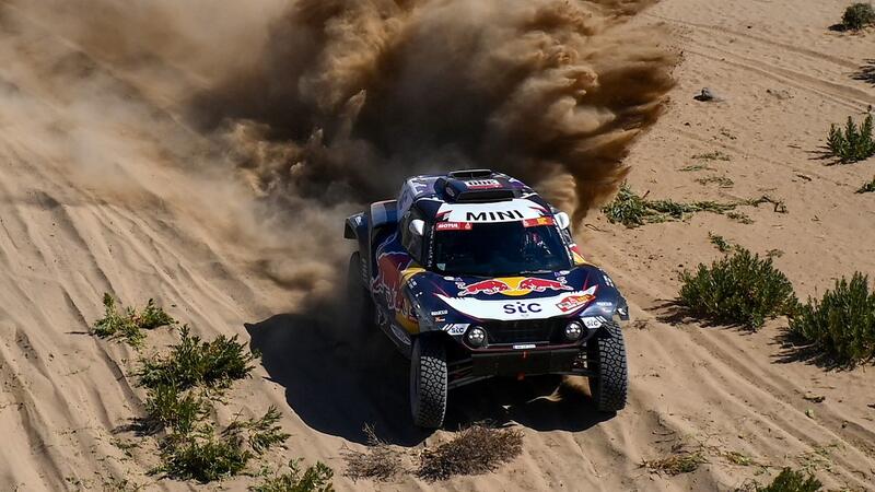وأنهى ساينز حامل اللقب بصحبة ملاحه ومواطنه لوكاس كروز على متن سيارة /ميني كوبر/ مرحلة اليوم الأول التي كانت مزيجاً من المسارات والكثبان الرملية تتخللها مقاطع صخرية، وامتدت لمسافة 277 كلم بين مدينة جدة وبيشة، في الصدارة بعدما احتل المركز الأول بزمن قدره 3.05.56 ساعة، متفوقاً بفارق 25 ثانية فقط على الفرنسي ستيفان بيترهانسيل بصحبة ملاحه ومواطنه إدوار بولانجيه على متن سيارة /ميني كوبر/ صاحب المركز الثاني وحامل الرقم القياسي بعدد الألقاب (7 في فئة السيارات و6 في الدراجات).