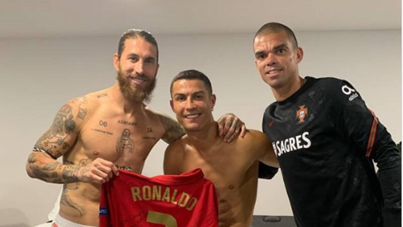 ونشر راموس صورته، مع زميليه السابقين في ريال مدريد رونالدو وبيبي عقب المباراة، وظهر راموس في الصورة وهو يتلقى من رونالدو هدية عبارة عن قميصه.