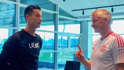 قضى النجم البرتغالي كريستيانو رونالدو يومه الأول في مقر تدريبات مانشستر يونايتد بعد انتقاله إليه قادماً من يوفنتوس في سوق الانتقالات الصيفي نهاية الشهر الماضي.