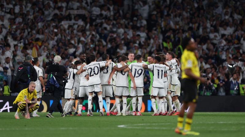 توج ريال مدريد الإسباني بلقب دوري أبطال أوروبا للمرة الـ 15 (رقم قياسي) بعد انتصاره المثير على بوروسيا دورتموند الألماني بهدفين دون رد في اللقاء النهائي الذي شهده ملعب ويمبلي بلندن ليلة السبت.